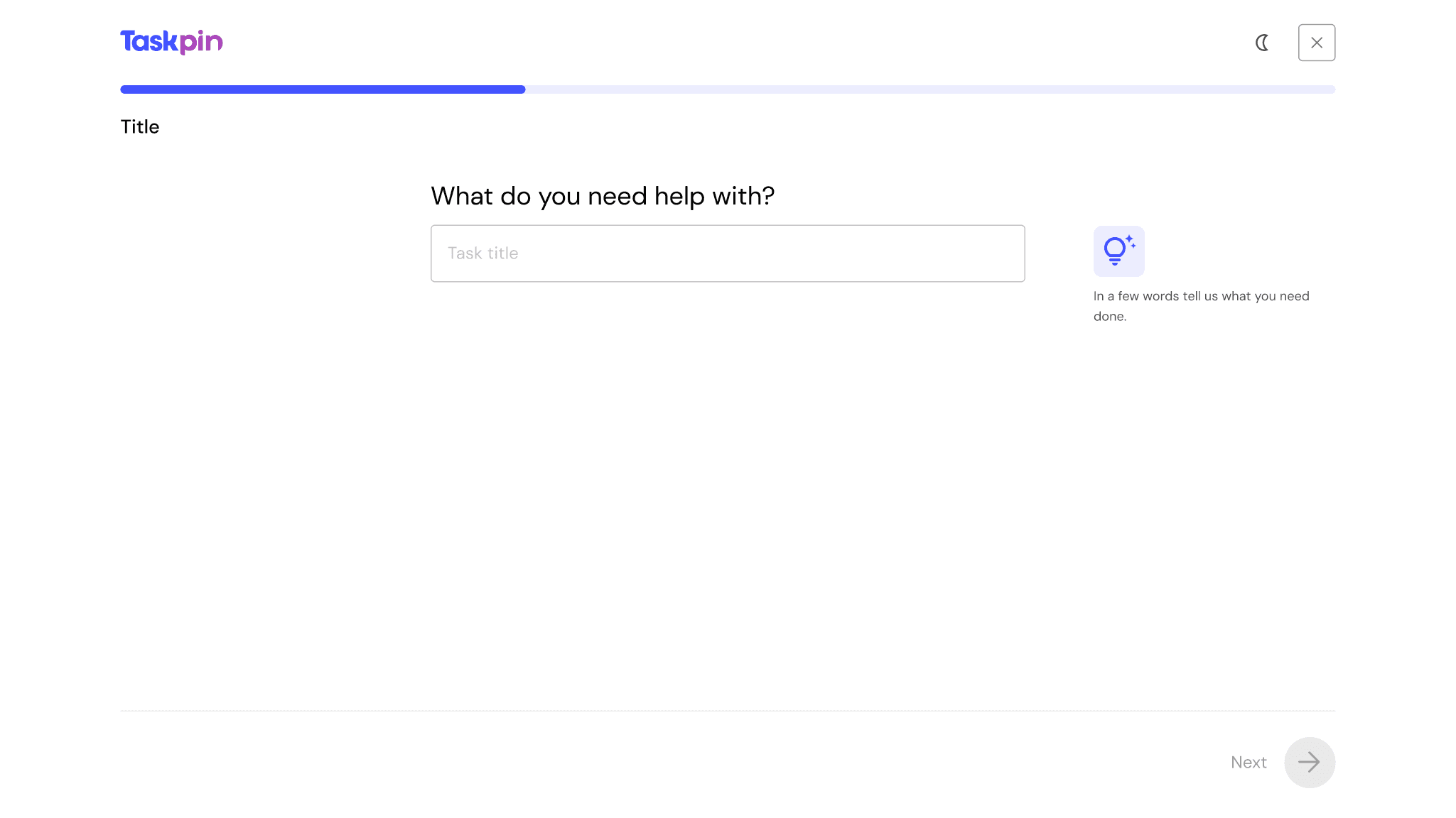 7️⃣ If a guest user wishes to post a task in Taskpin, I provide them with an exclusive page to enter their email address. Their email address will be checked, and if the user does not exist, they will enter the onboarding process. If the user exists, they will be asked for their password and can quickly post the task after logging in.