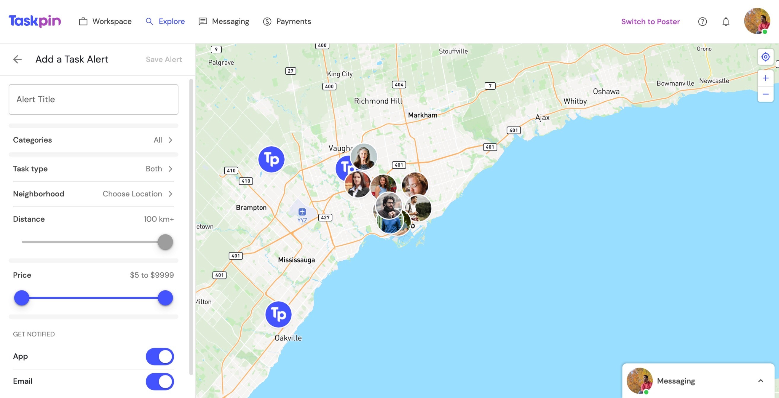 2️⃣ Connecting Task Alerts to push notifications to inform Taskers about new tasks related to their alert settings.