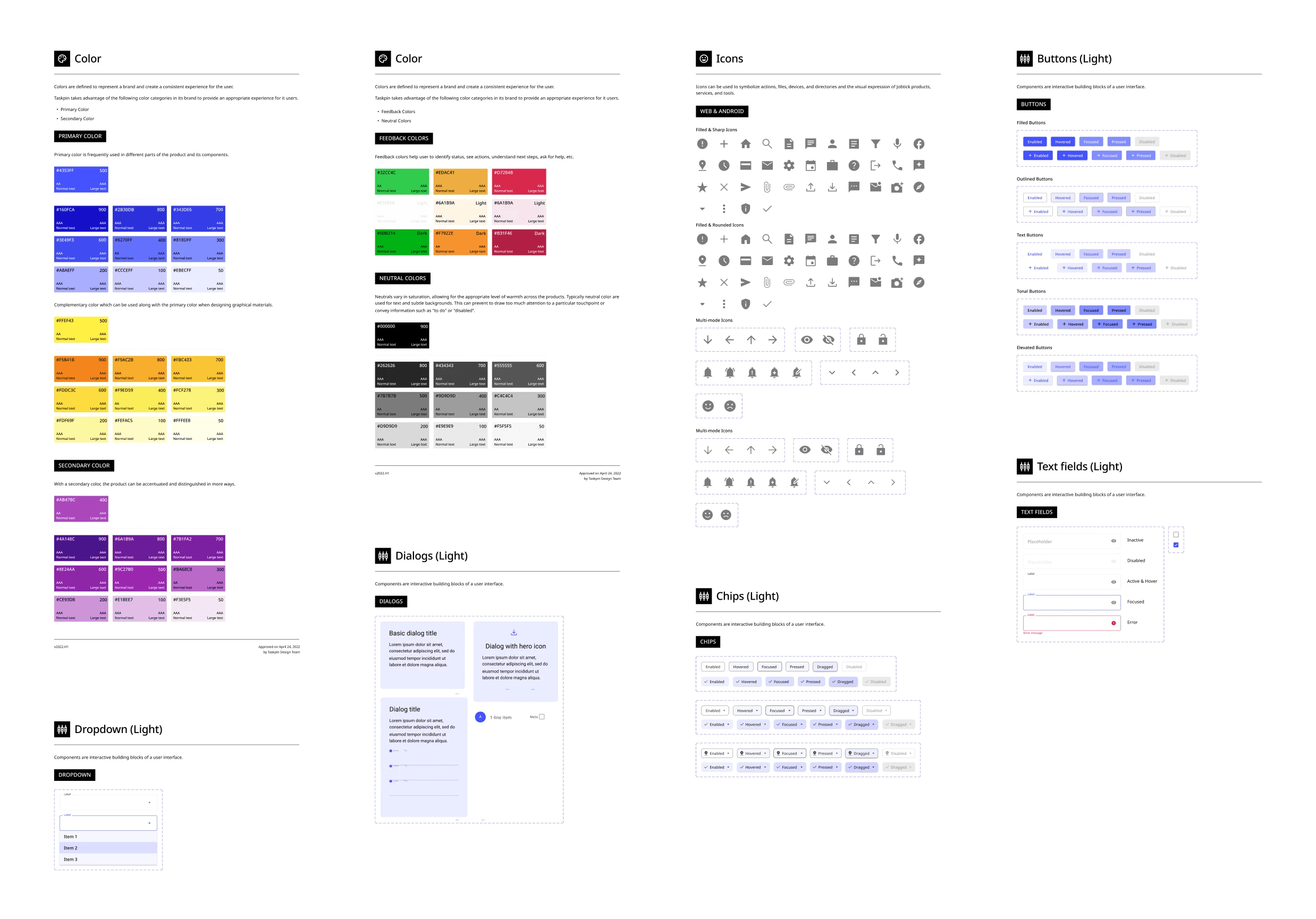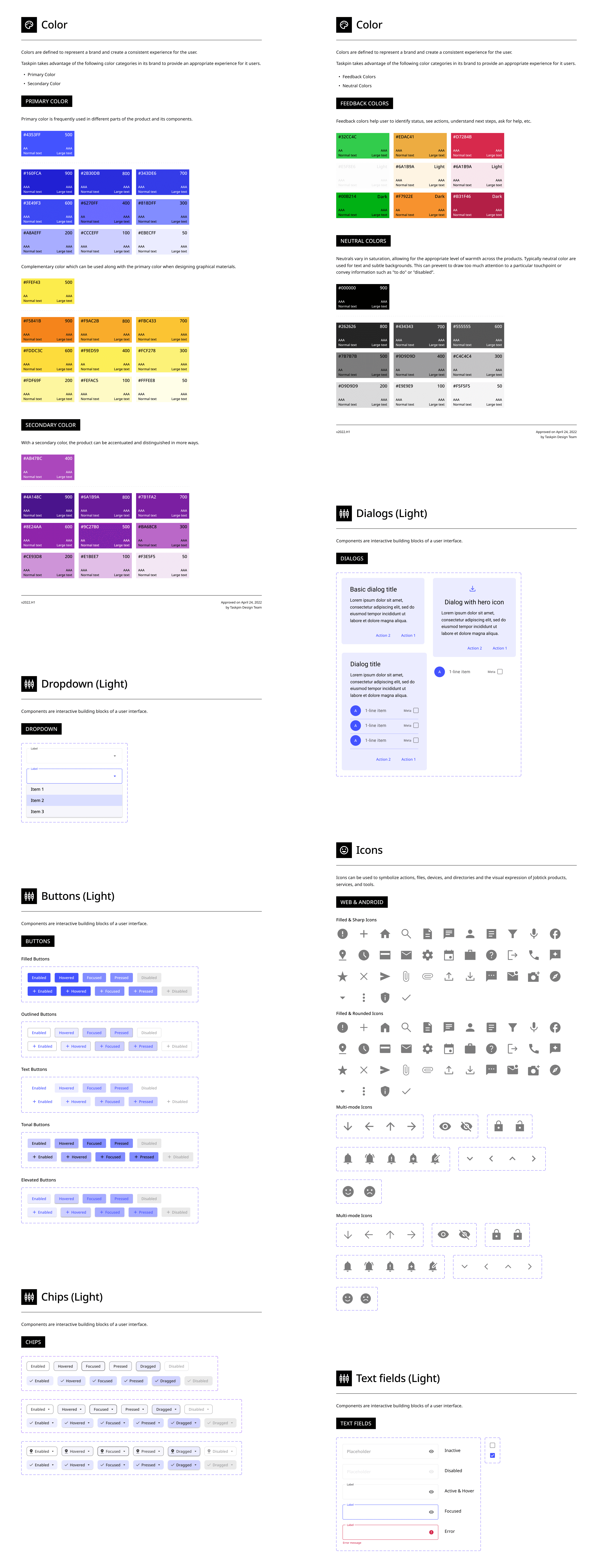 In addition, I explained our color palette that contains Primary, Secondary, Neutral, and Feedback colors. All rules regarding accessibility of colors such as color contrast, proper text size on each color, and so on are in this section.