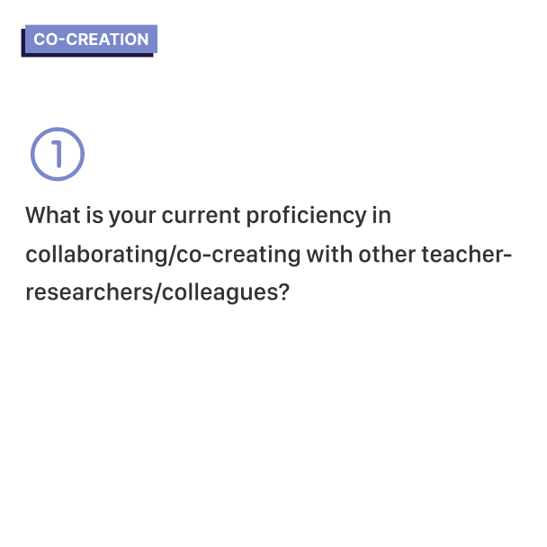 Colorful dot stickers are used by each teacher-researcher to indicate their level of expertise in different areas. In a group session, each TR chooses one color, allowing the facilitator to understand each TR’s condition.