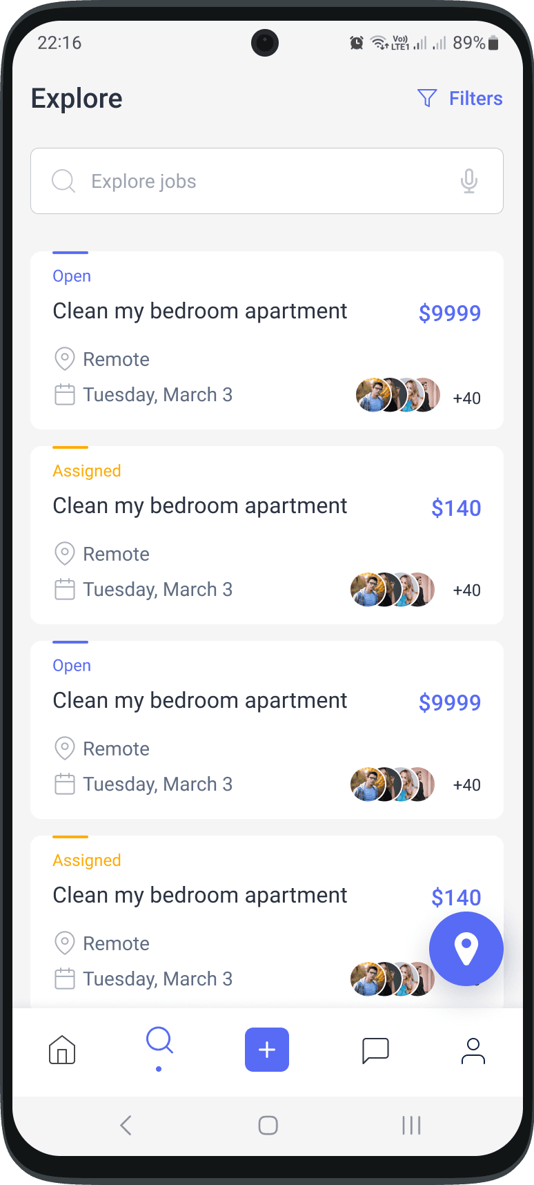 The following screens show the implementation of new designs based on the Taskpin Design System. Why is it different? Because the new frames are designed based on the native characteristics of each platform.