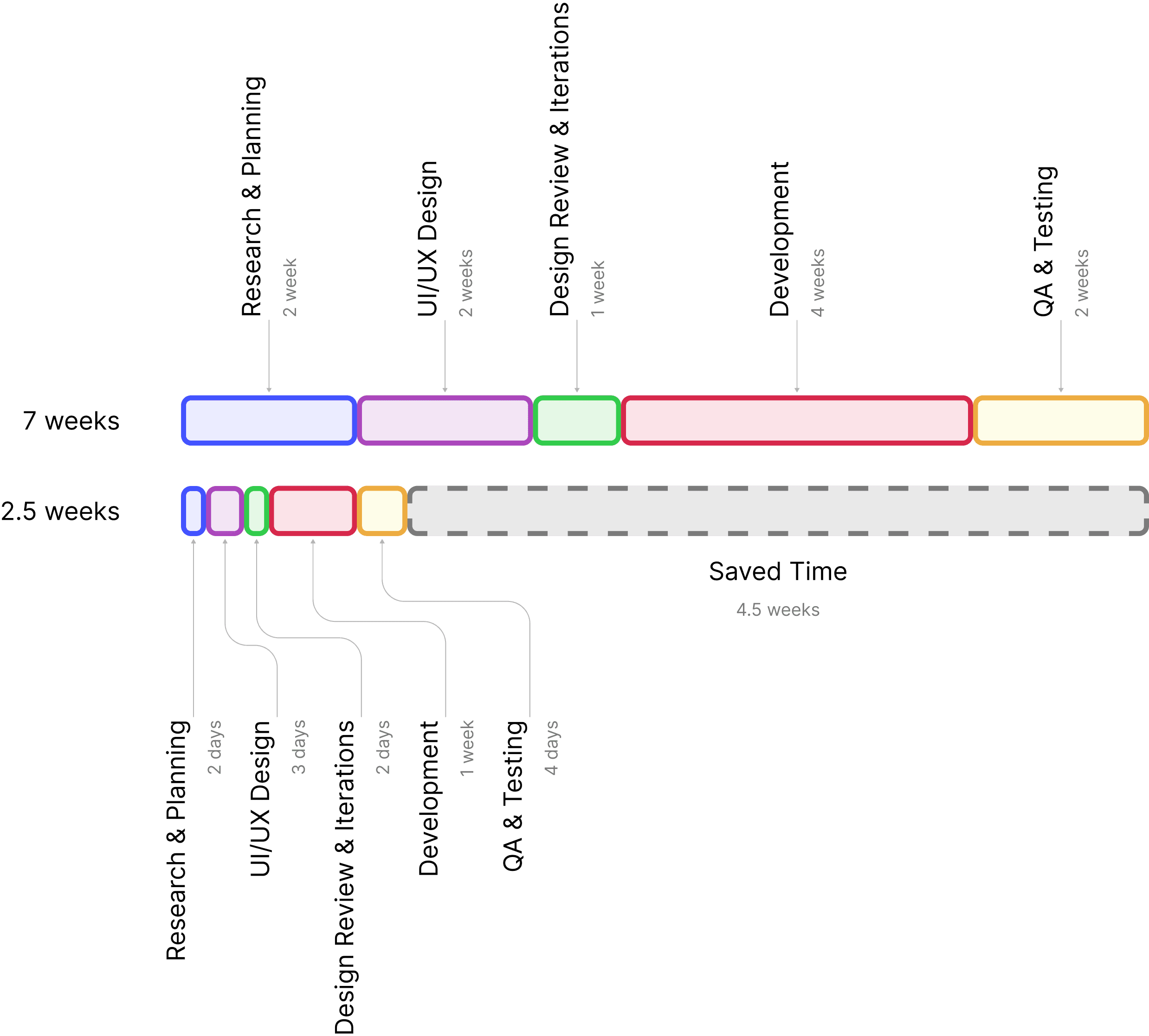 The following timeline shows the effect of using a design system for the Task Alert feature. The redesign process for this feature took only 2.5 weeks to deploy.