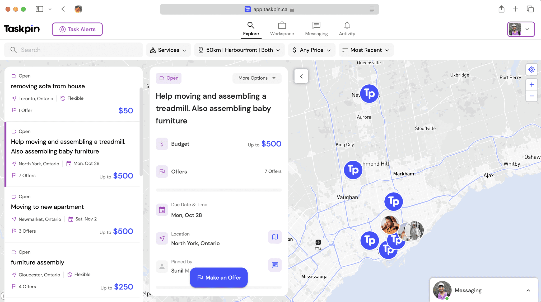 Taskpin is an online community marketplace platform that leverages AI to connect users with skilled local professionals across Toronto, Canada.